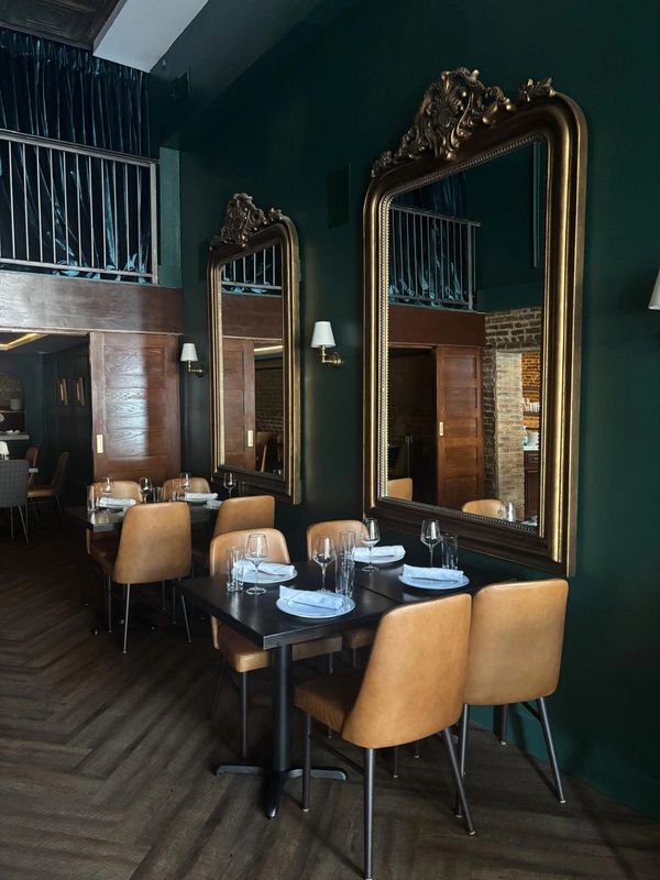 Our skilled team crafted these custom tabletops using two premium wood species, creating a refined, geometric pattern that elevates the restaurant’s design. We applied the same technique to the flooring, producing a striking, cohesive layout. Together, the tables and floors blend seamlessly with the restaurant’s warm, upscale atmosphere.